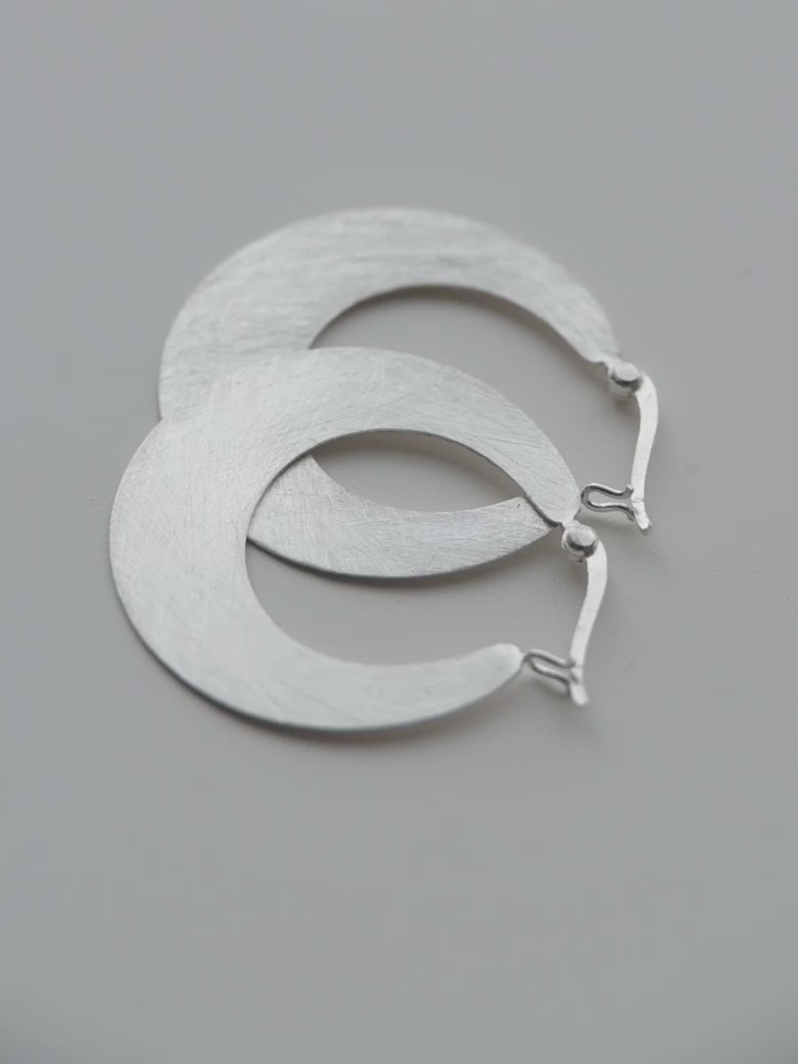 • A modern take on the classic hoop earrings, these large flat hoop earrings are handcrafted in 925 sterling silver, with a matt brushed finish. A statement piece, perfect for everyday wearing and special occasions