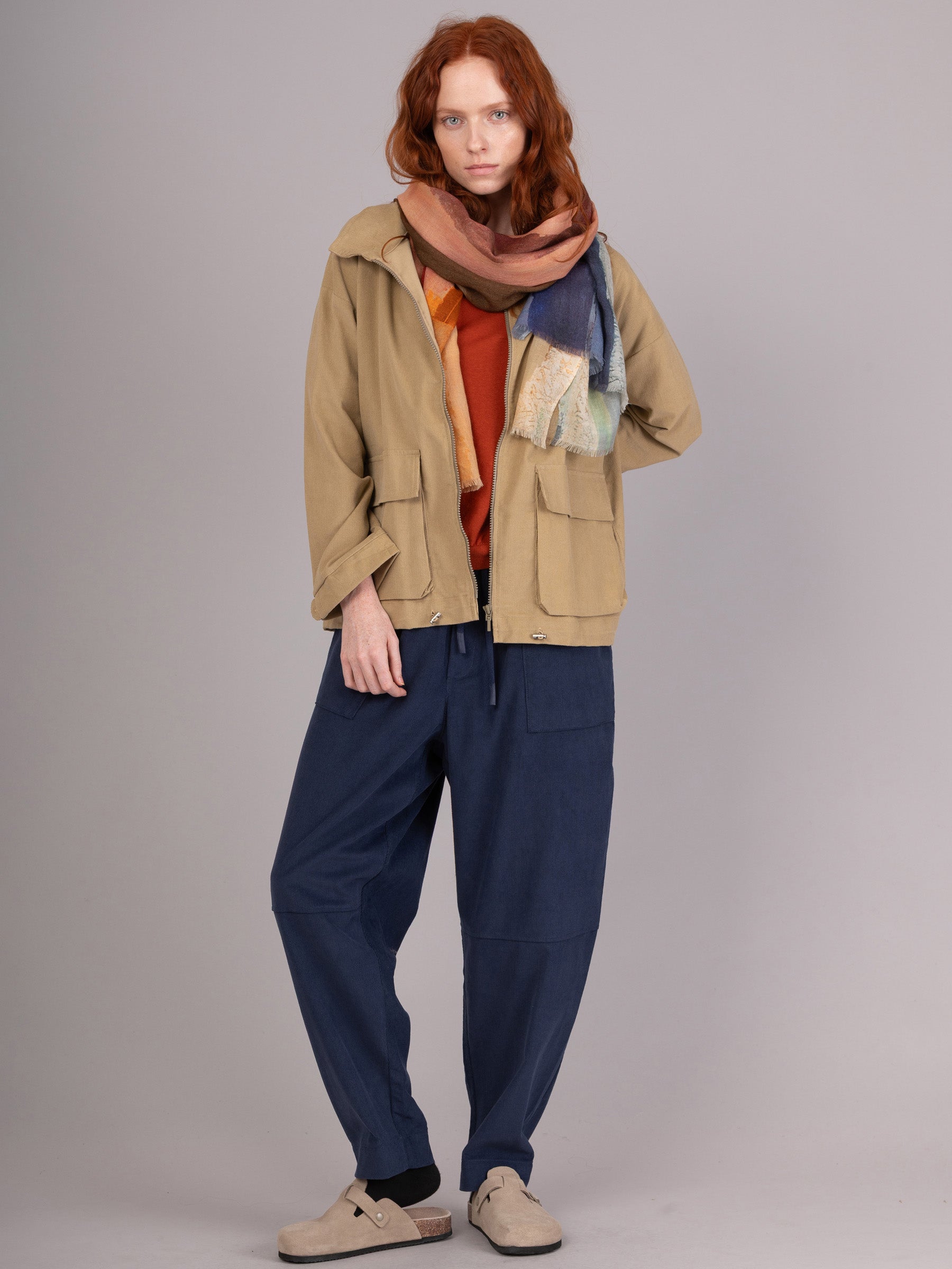 Inspired by traditional workwear, Foula is a medium-weight unlined jacket designed with function and ease in mind. It has a boxy, slightly oversized shape with a sturdy zip fastening and a drawcord with toggle at the hem for adjustment. Two deep flap pockets at the front add practicality. Cut from pure cotton needlecord, it feels soft yet sturdy — a versatile layer to wear between seasons, from spring through to autumn.