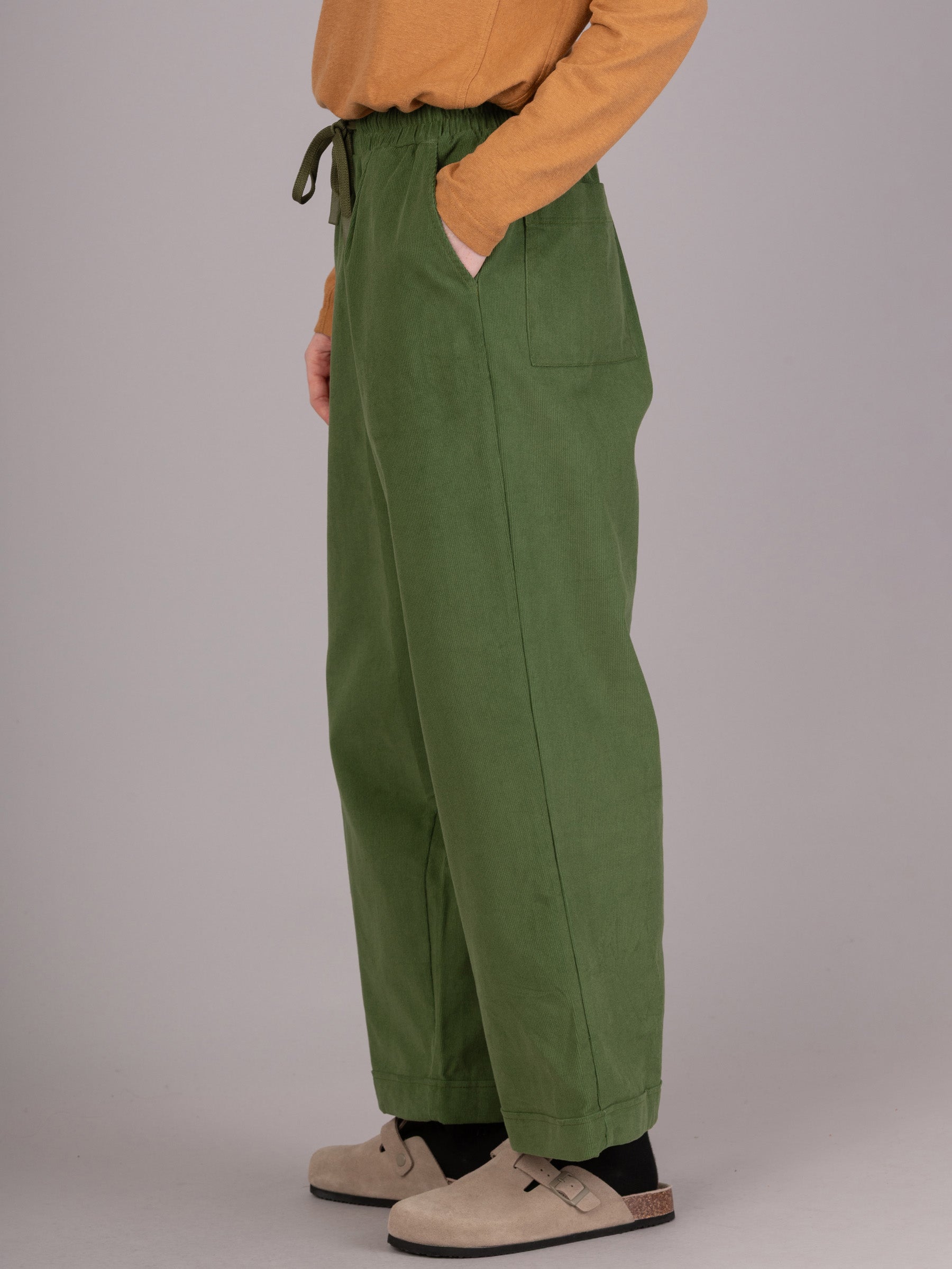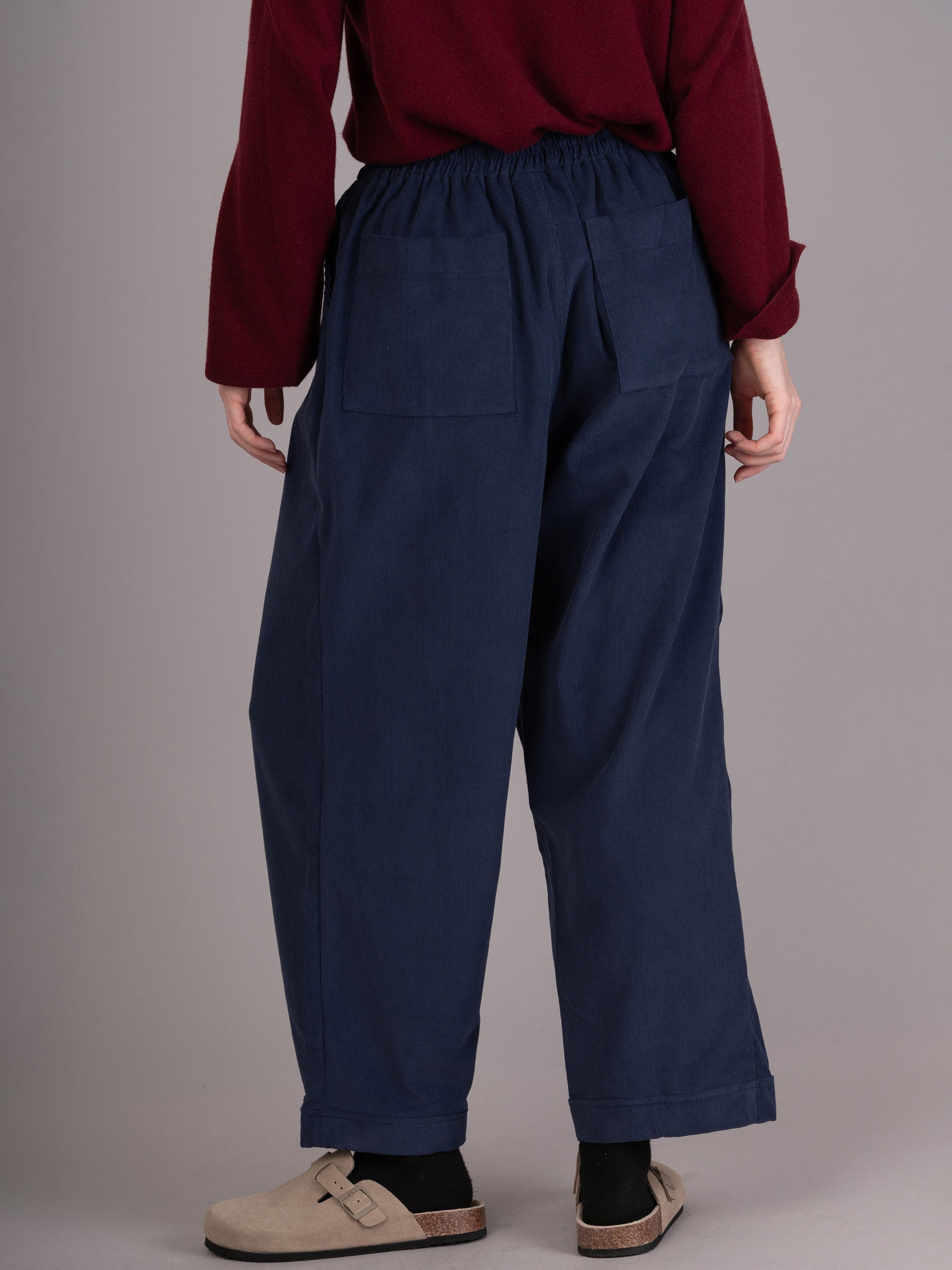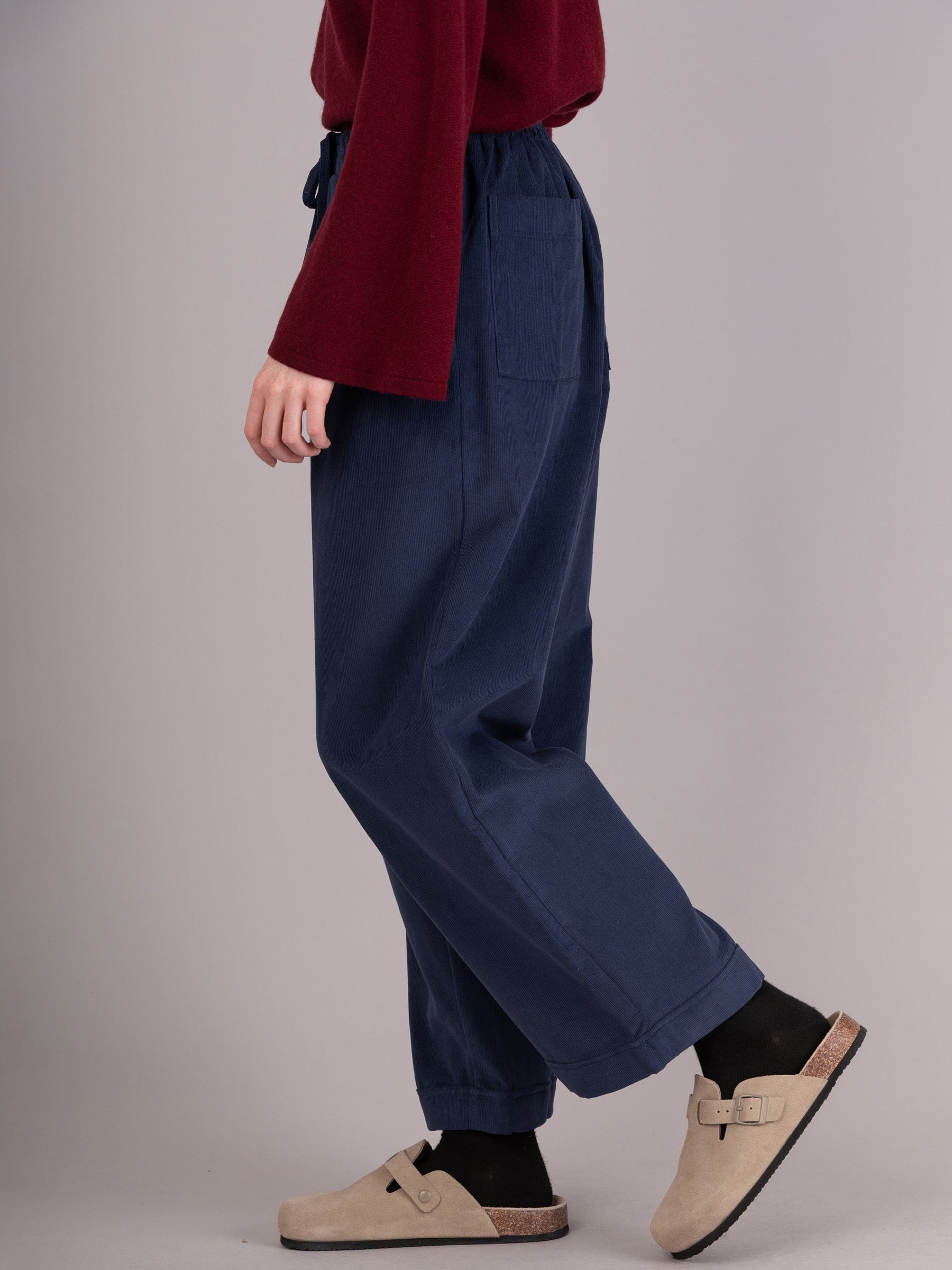 Easy and unhurried, Kami trousers are made for comfort and simple everyday wear. They have a soft elasticated waistband, a generous fit through the hips, and wide straight legs that fall to a slightly cropped length — ideal with boots. Crafted from pure cotton needlecord, they feel soft and weighty in hand, offering warmth and ease through the cooler months.