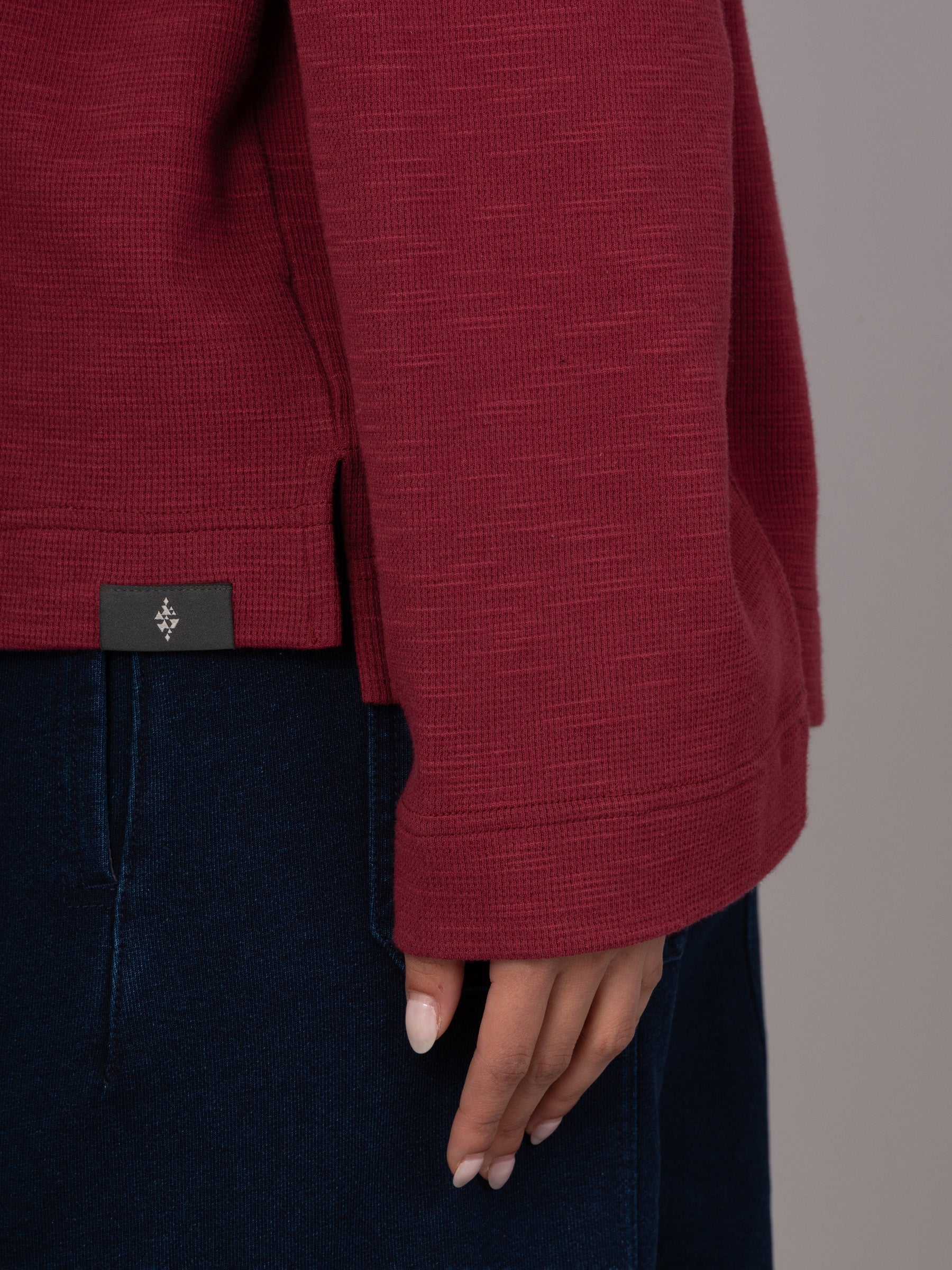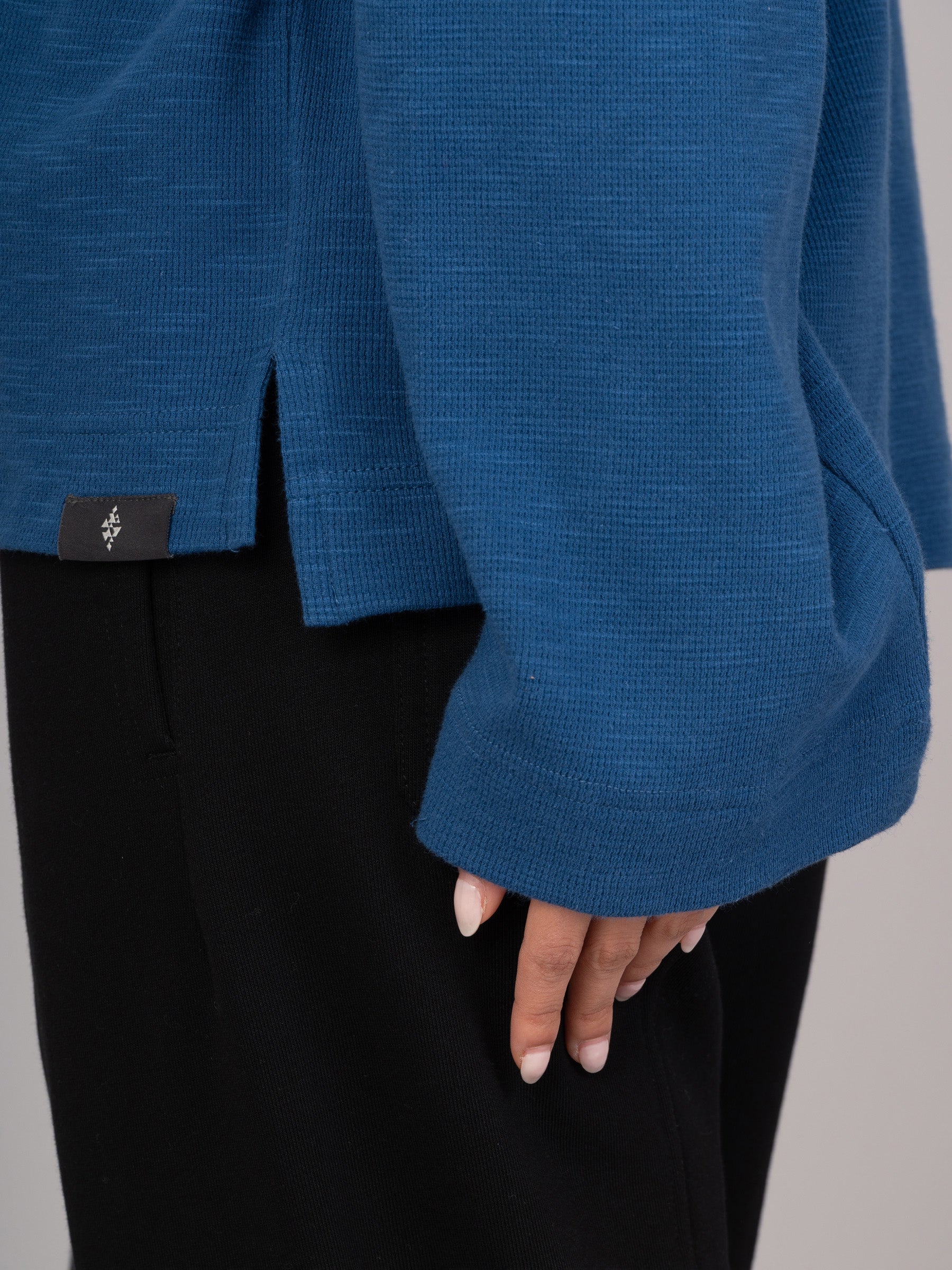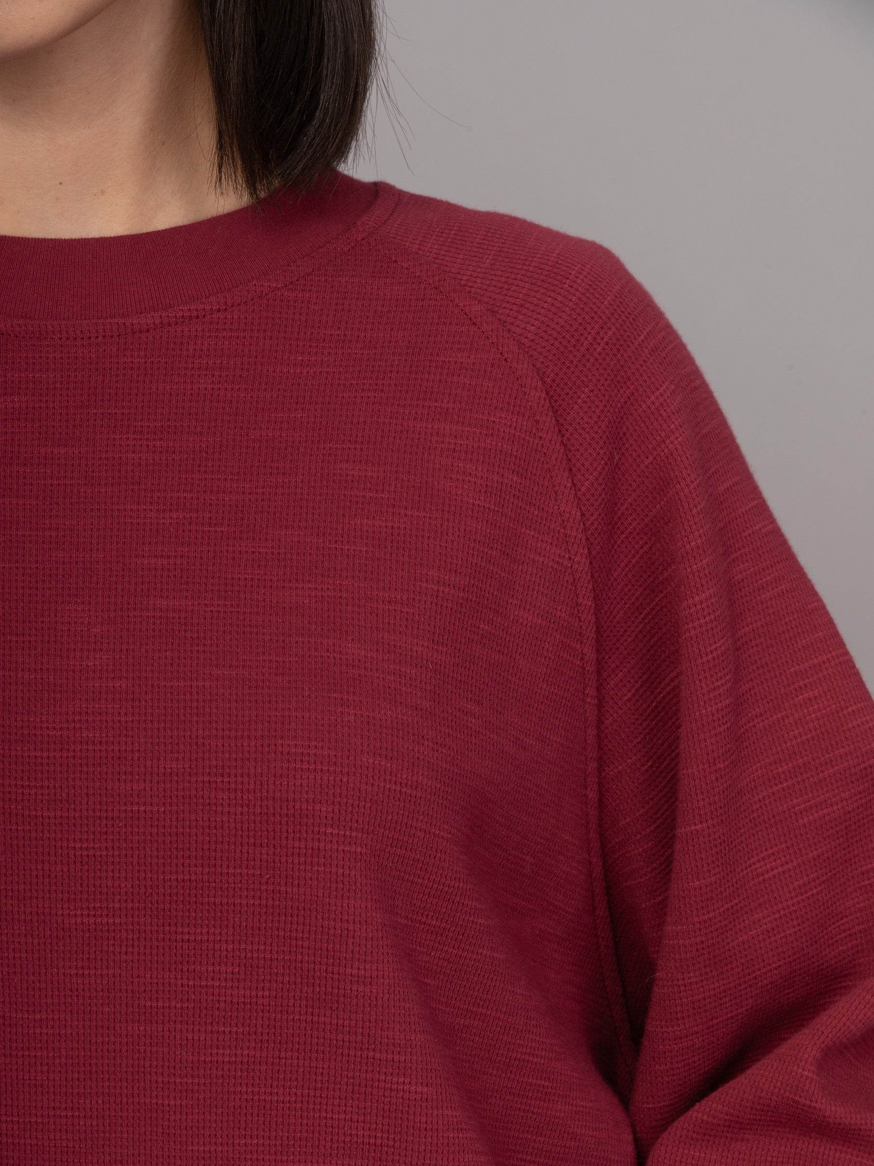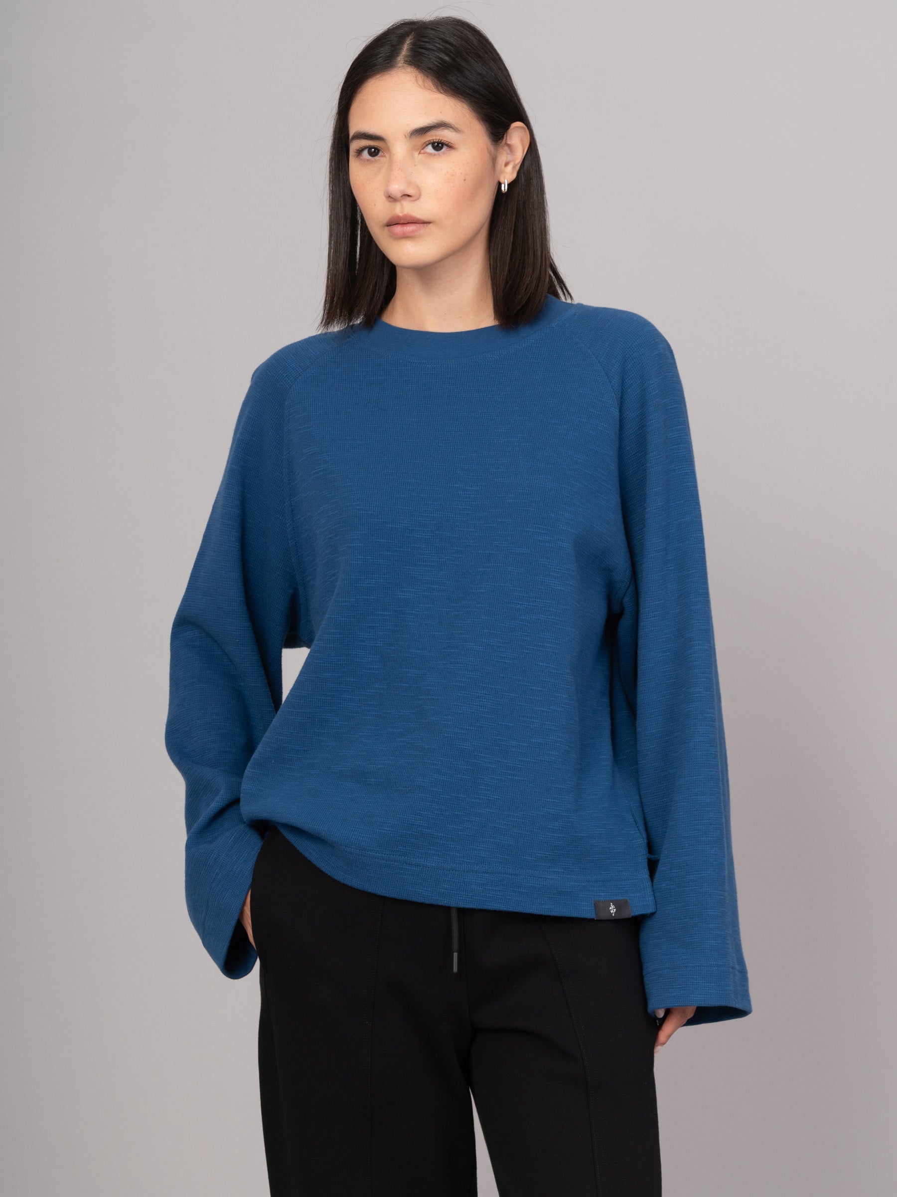 Made from mid-weight cotton with a soft waffle texture, Yasai 1 T-Shirt is all about relaxed comfort. It features raglan shoulders, wide bell-shaped long sleeves, and a ribbed neckline. Two short side slits add ease and movement. An effortless style with a laid-back, casual vibe.