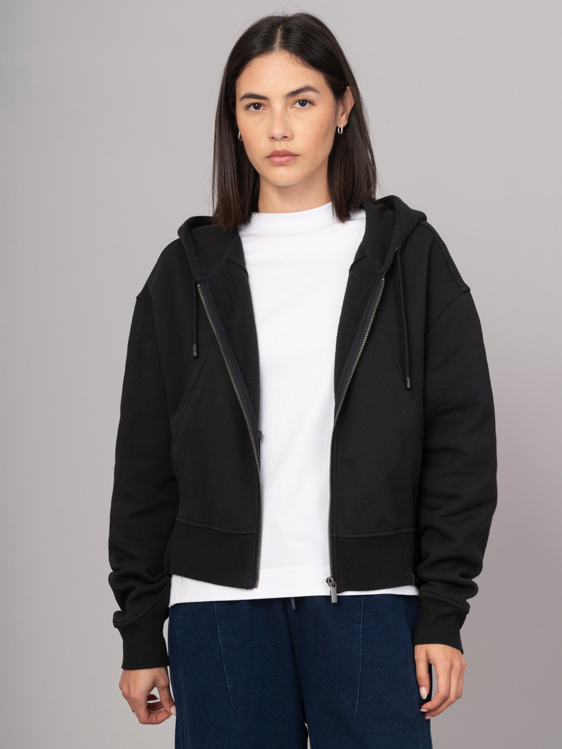 • Fogo is a zip up hoodie with a slightly cropped and fitted silhouette. Clean straight style lines at the front and back and subtle side slits bring a modern edge. Wax-dipped drawstring ends offer a lightweight alternative that stays in place and won’t swing or hit the body during movement. Crafted from heavyweight pure cotton fleece with a brushed interior, it's soft, structured, and designed for all-day wear—perfect for the gym, coffee runs, or everyday errands.