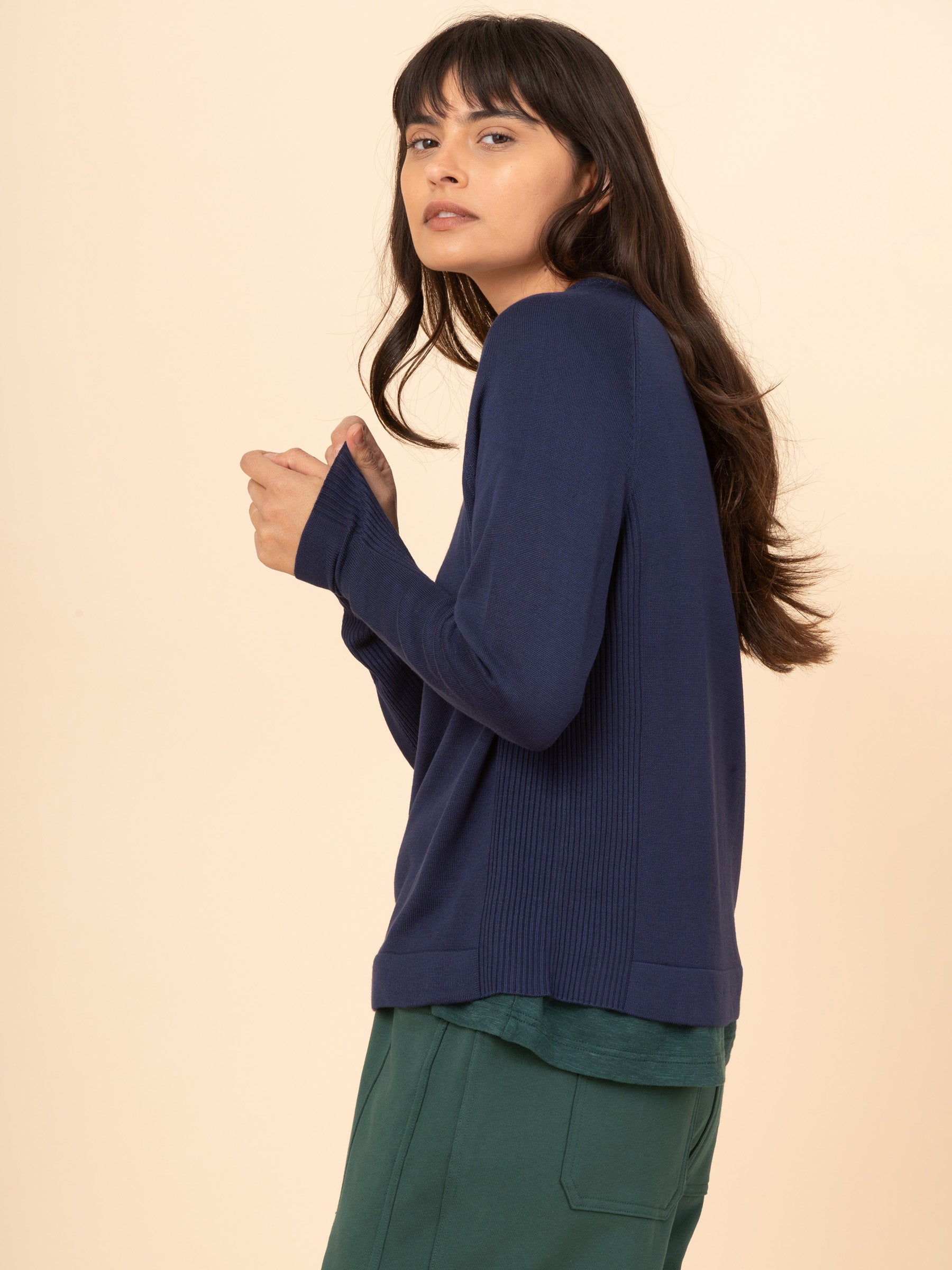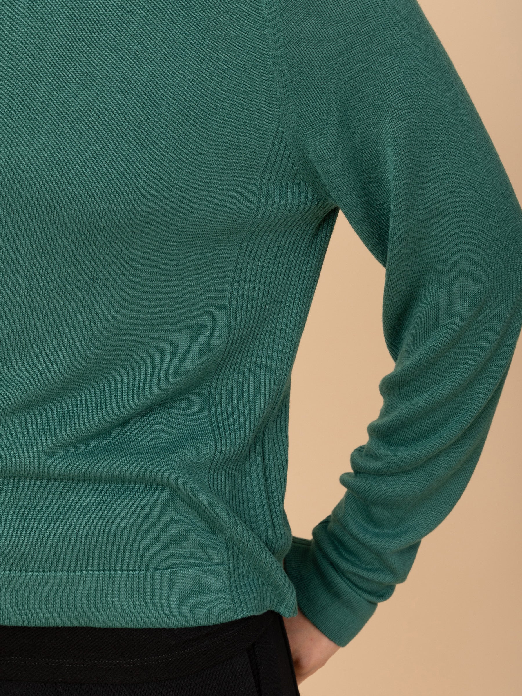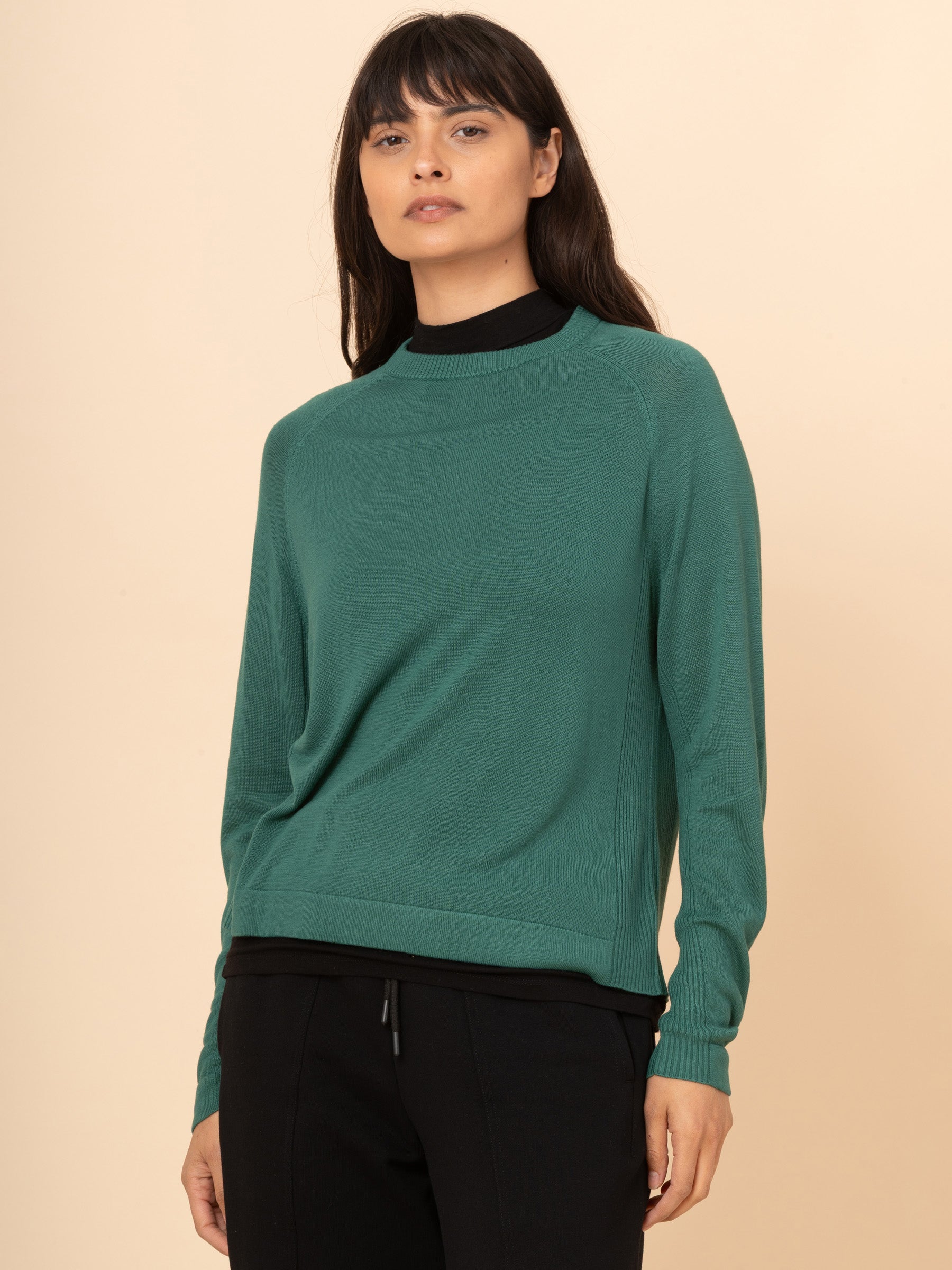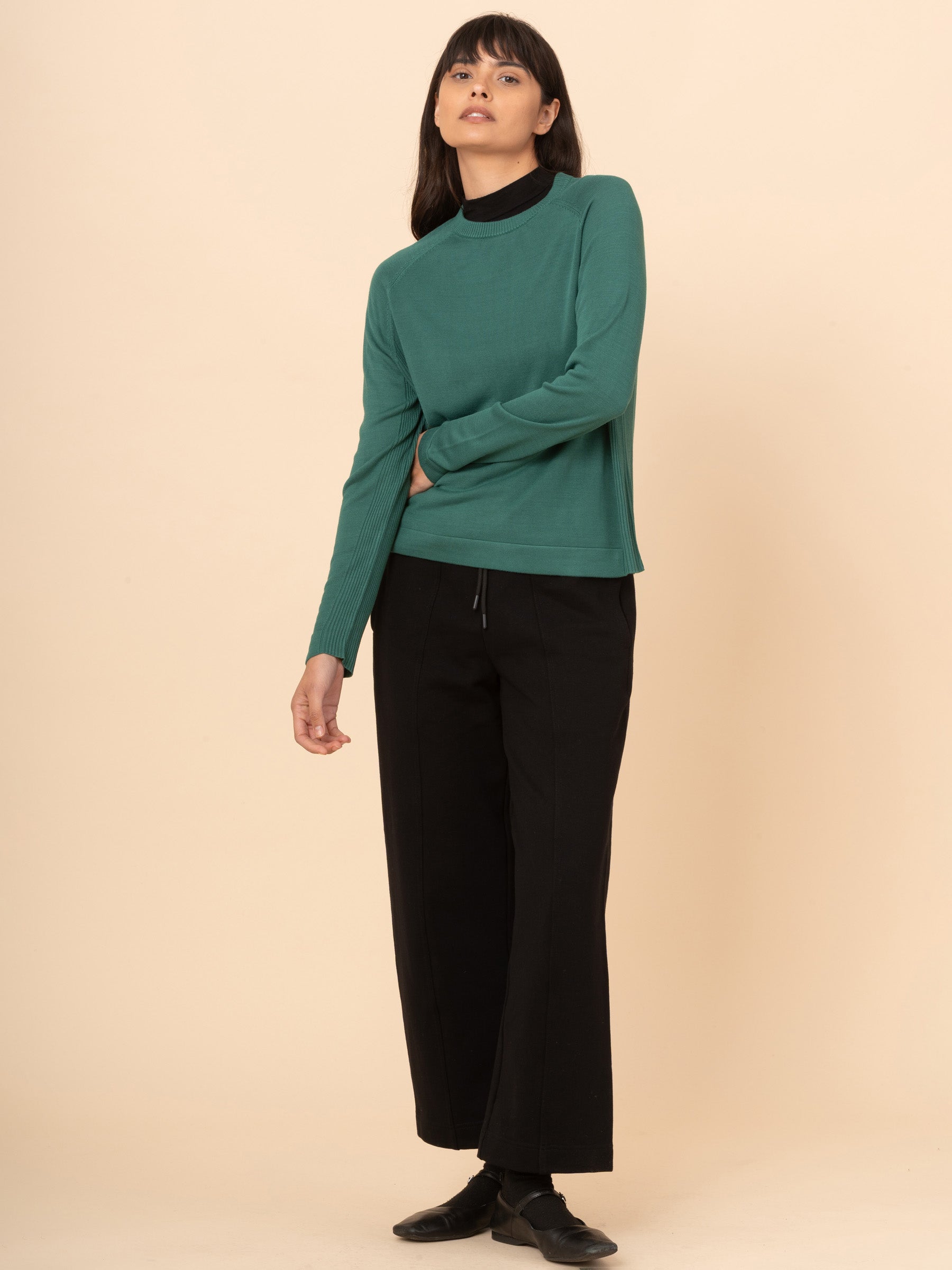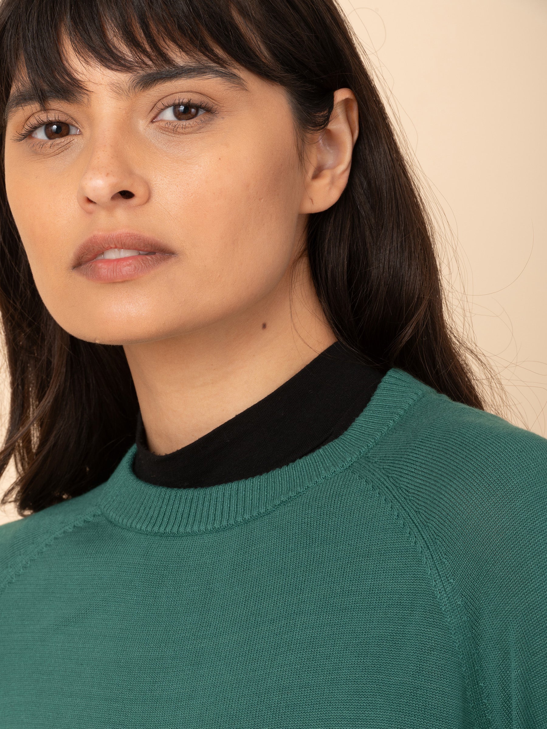 Anthea is part of our latest bamboo viscose collection, knitted from an innovative ultra-soft yarn. Smooth and silky to the touch with a beautiful drape, the fabric offers exceptional comfort and is naturally hypoallergenic. Designed with effortless elegance, this sweater features a round neckline and contemporary raglan sleeves. Ribbed panels at the sides and under the arms lend subtle structure, while the thoughtful detailing adds sophistication to a versatile, easy-to-style piece.