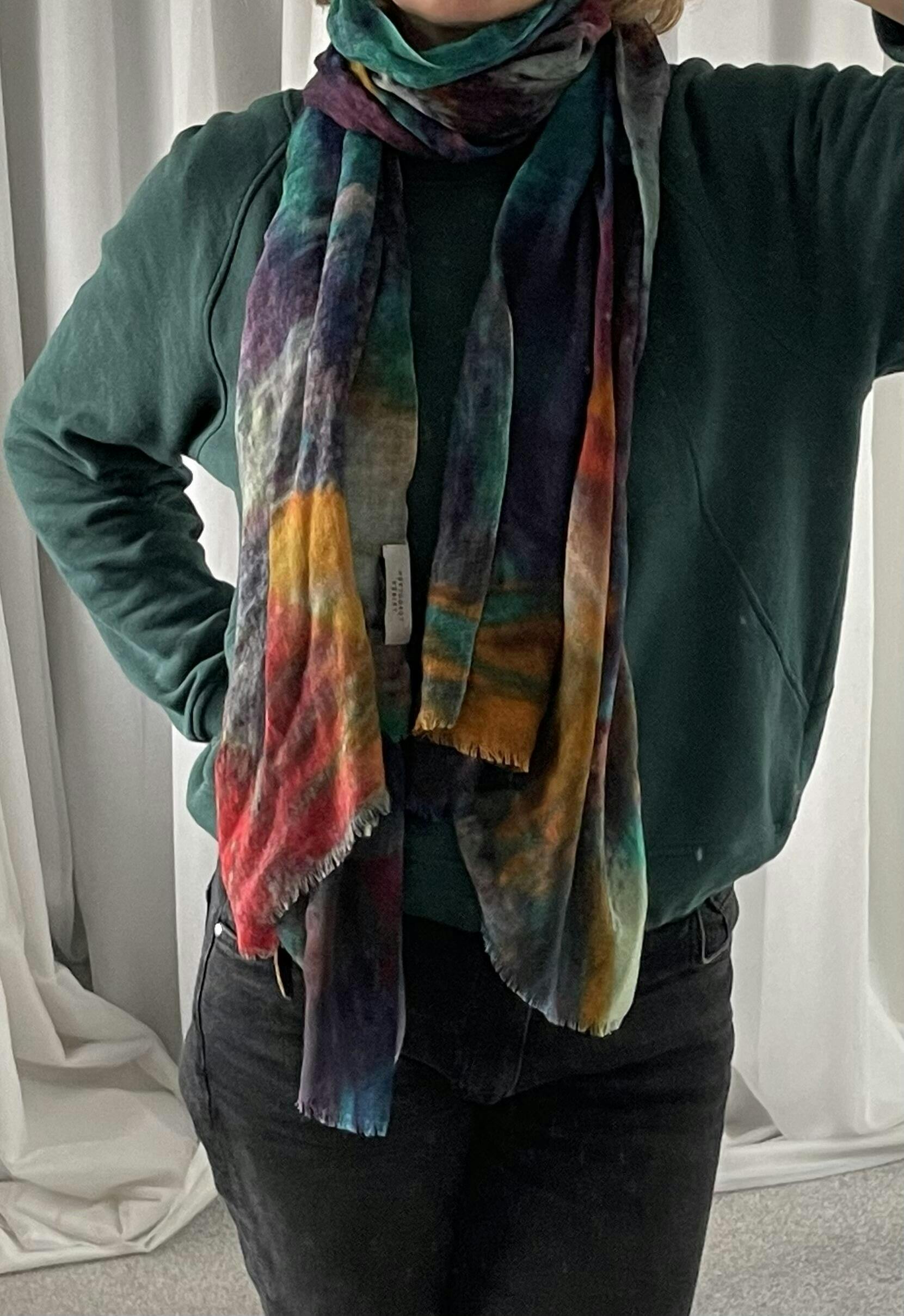 Inspired by water colour painting, this scarf is crafted from soft fine wool and lustrous mulberry silk blend. The exquisite materials make it light weight to wear yet provide enough warmth in the colder months. Wrapping around the neck or wearing it as a shawl, the styling possibilities are endless.