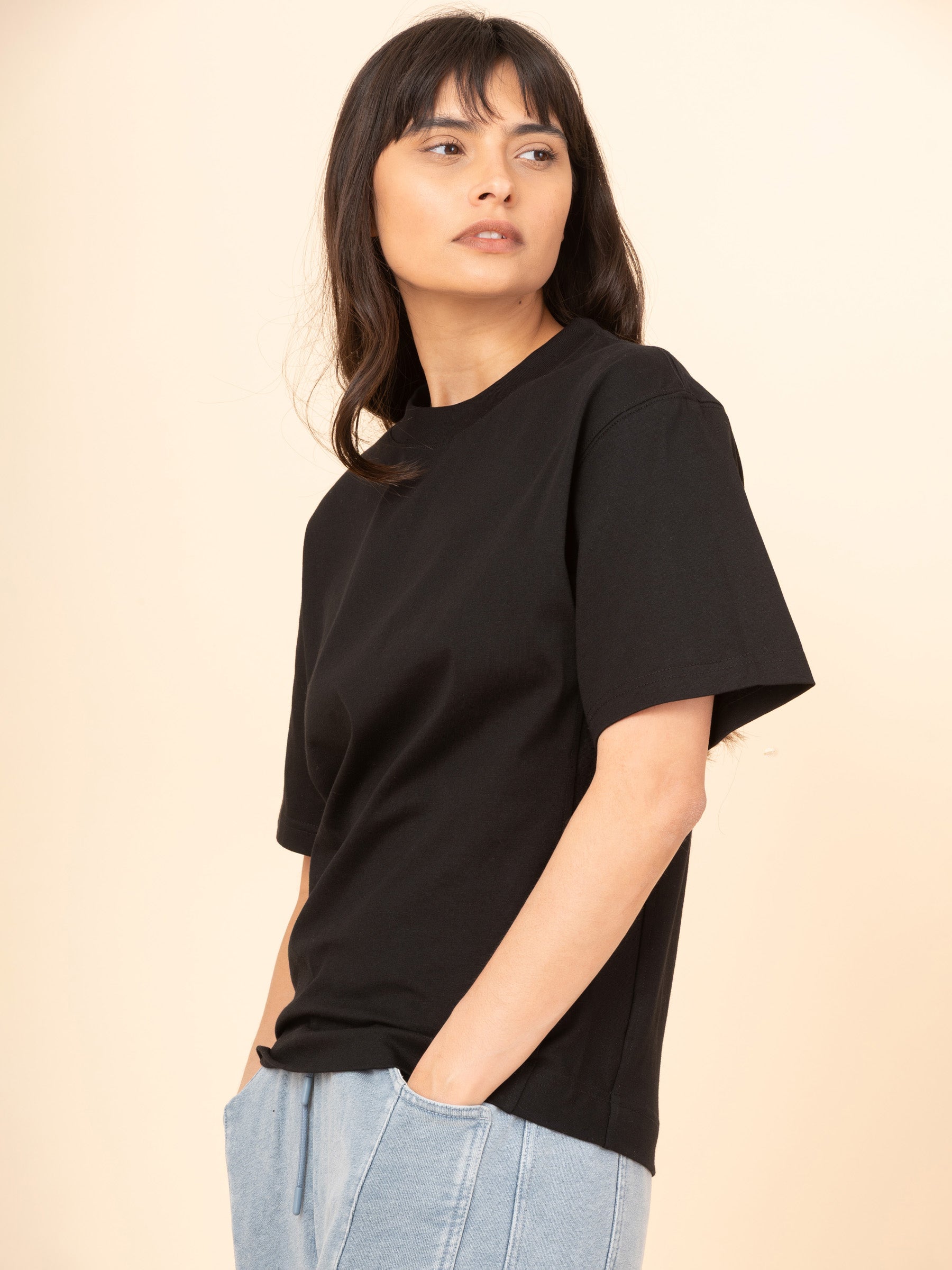Crafted from smooth, compact mercerised cotton jersey, the Vigo T-Shirt offers a crisp, modern edge with a polished finish. Available in timeless black and white, it’s a refined take on the everyday essential. Signature details—tailored side panels and felted seams—ensure the shape holds beautifully, wear after wear.